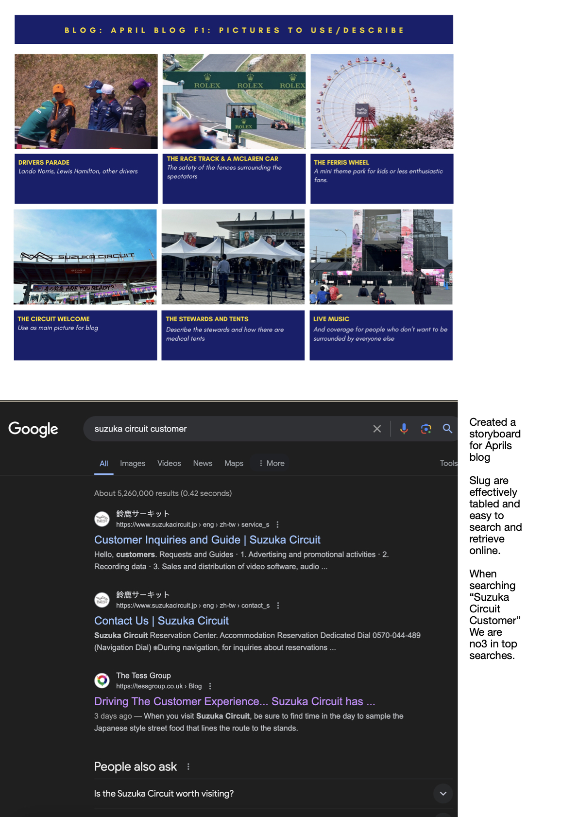 Storyboard of blog content